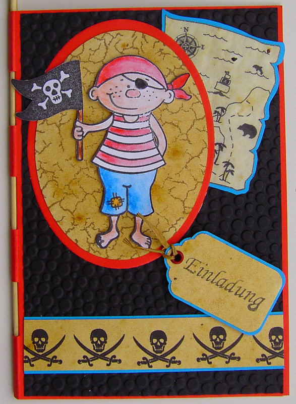 Schatzkarte, Piratenhintergrund, Tag und Bordüre sind mit Kaffee eingefärbt.